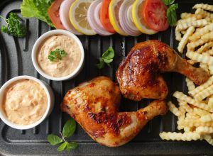 Yogurt peri peri sauce & mayo peri peri sauce ka saath serve karein!