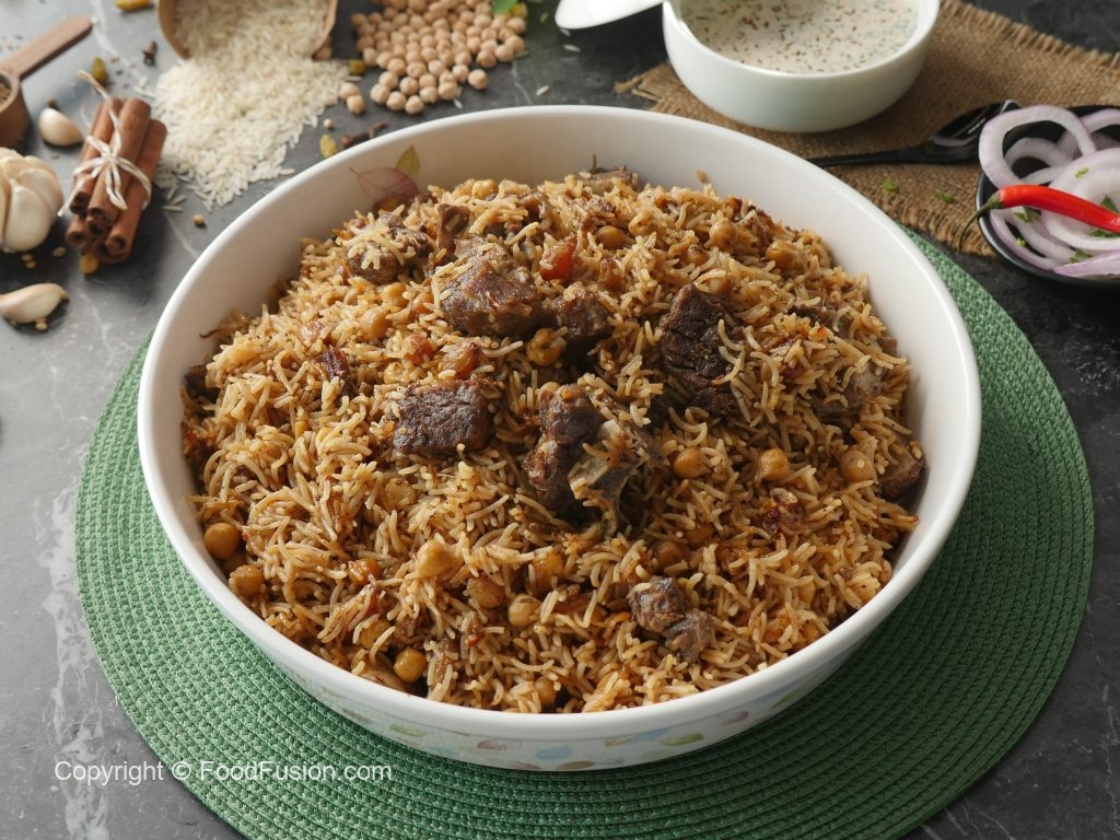 -Now add cooked meat,sprinkle reserved ground spices (1 tsp),cover with kitchen cloth & lid and cook on high flame for 2 minutes to build up steam then steam cook on low flame for 8-10 minutes.