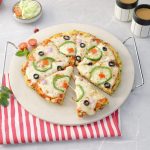 -Add & spread pizza sauce,add cheddar cheese,mozzarella cheese,capsicum,tomato,onion & black olives.