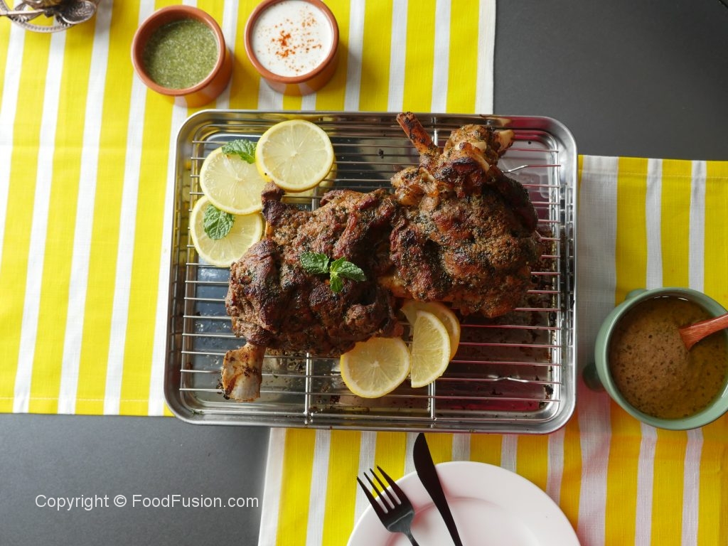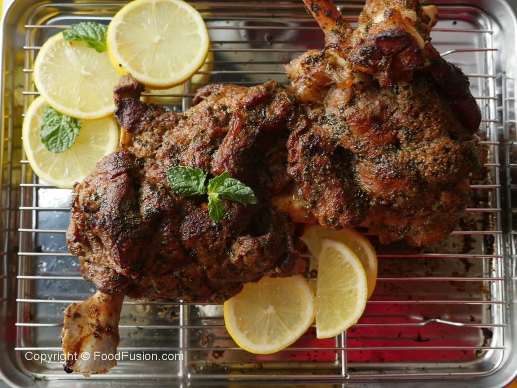 Grill mutton leg in preheated oven at 200 C  for 10-12 minutes or until golden brown color appears.