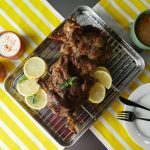 On baking tray,place cooked mutton leg and with the help of the brush,apply prepared mint mixture.