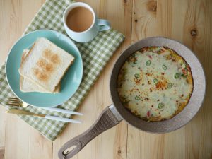 -Add mozzarella cheese & wrap the cling film to make a thick pancake shape.