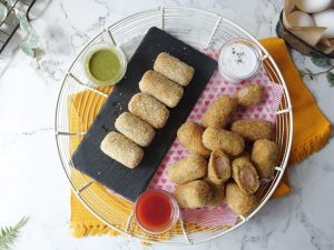 -Now place fried sausage,cover properly with potato mixture & make croquettes of equal sizes.