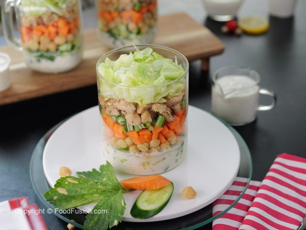 When you want a healthy meal that is simple to make and wholesome in taste, try this Protein Packed Creamy Chicken Salad in Mason Jar made with the goodness of Olper’s Dairy Cream. The jar lets you pack and go for manageable meals at work/office. #OlpersDairyCream #GoodnessBarhao #FoodFusion #HappyCookingToYou #digitalammi #saladrecipe #Salad #protiensalad #masonjar #foodfusionrecipe