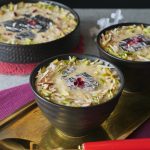 In a serving bowl,add prepared kheer and garnish with silver leaf,dry nuts & dried rose petal.