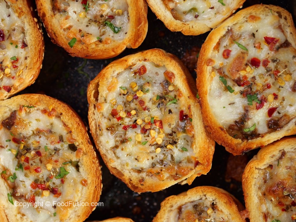 -Add cheese slice,beef filling,cheddar cheese,dried oregano & red chilli crushed (makes 12-14).