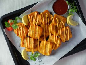 -Serve potato nuggets with prepared sauce!