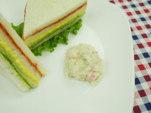 Mash the eggs in bowl adding mayonnaise, mustard, salt, pepper and yellow color. Set aside.