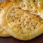 Brush on each naan and sprinkle black & white sesame seeds on top.