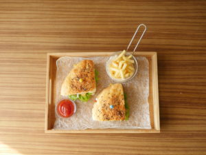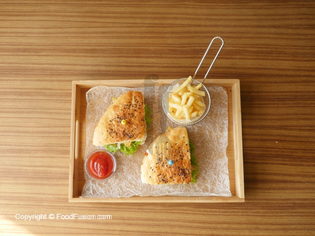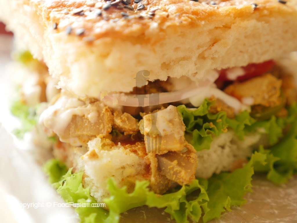Cut naan into four pieces,add tomato ketchup,salad leaf,chicken filling,tomato,onion,mayonnaise and cover with top bun & serve.