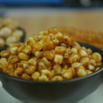 It is very important that the corn kernels are plucked by hand as shown in the video and the exterior of the corn kernels is completely dry. Any extra moisture on corn and chickpeas will make them too salty. Also make sure your salt is very hot when you put in the kernels.