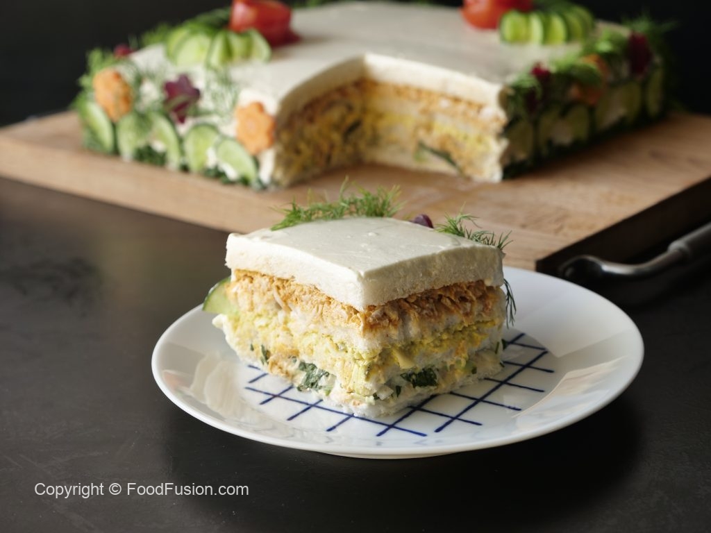 Decorate sides & top with green onion leaves,dill,cucumber,carrot,beetroot & tomato.