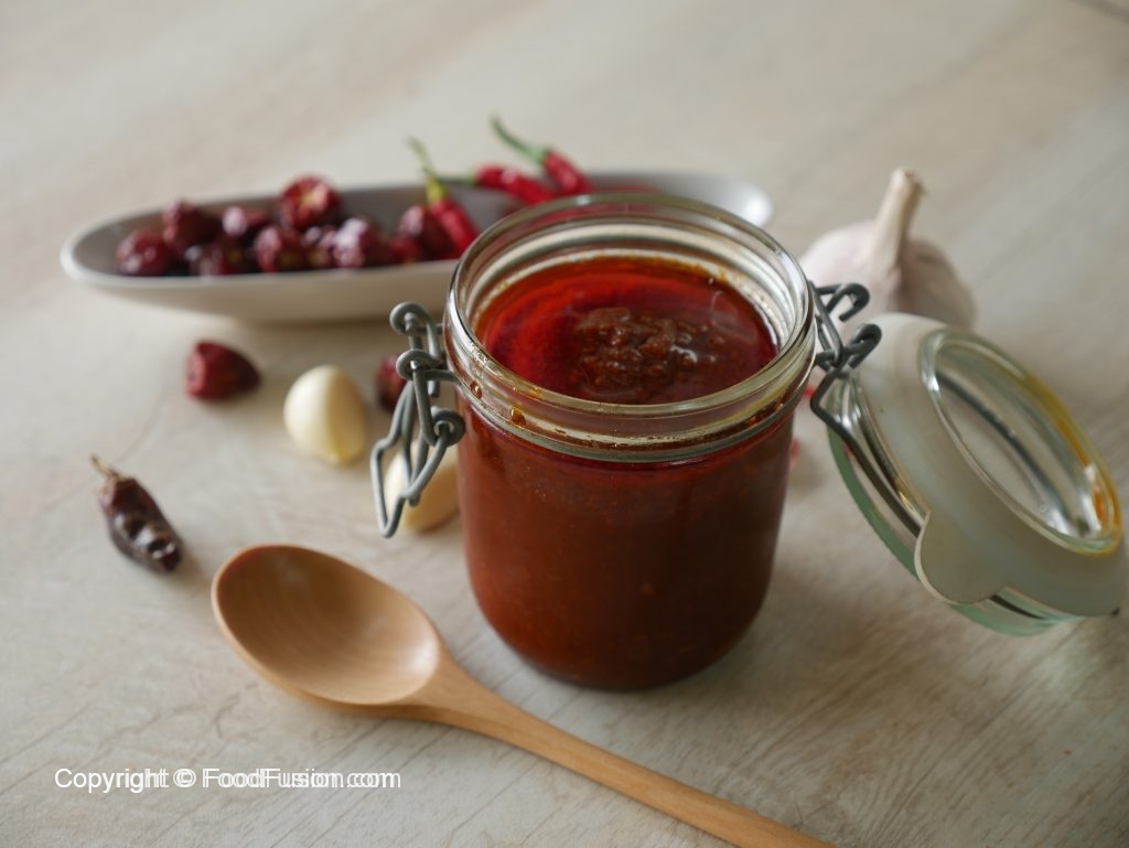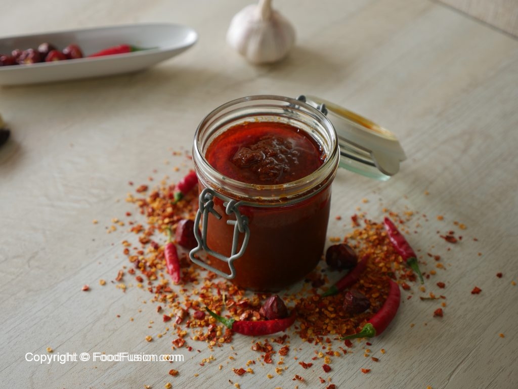 Now add prepared red chili paste,mix well and cook until oil separates (3-4 minutes) & set aside.