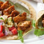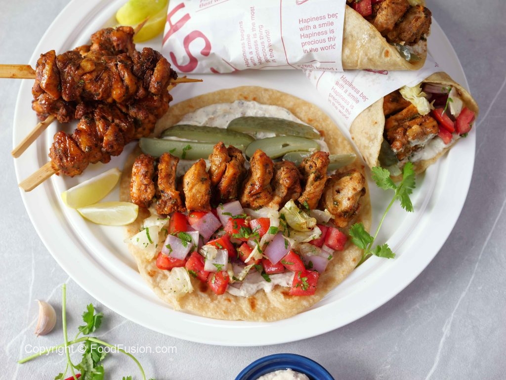 -On tortilla,add& spread prepared tahini sauce,paprika powder,prepared chicken,prepared salad, pickled cucumber,fold & wrap in butter paper & serve!