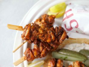 -Thread marinated chicken in wooden skewers (make 7-8 skewers).