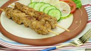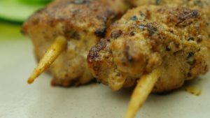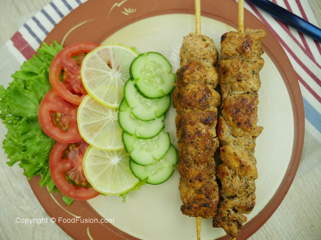 In grill pan,add oil and grill skewers from all sides until done.