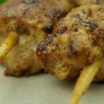 Thread chicken boneless cubes into skewers.
