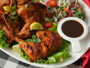Serve smoky tandoori chicken with tamarind sauce & salad.