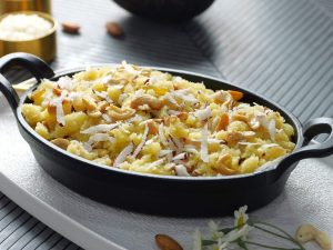 -In a frying pan,add semolina & dry roast on low flame until fragrant (4-5 minutes) & take out in a separate bowl.