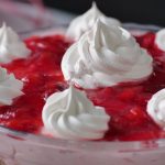 Garnish with reserved whipped cream & prepared strawberry jello.