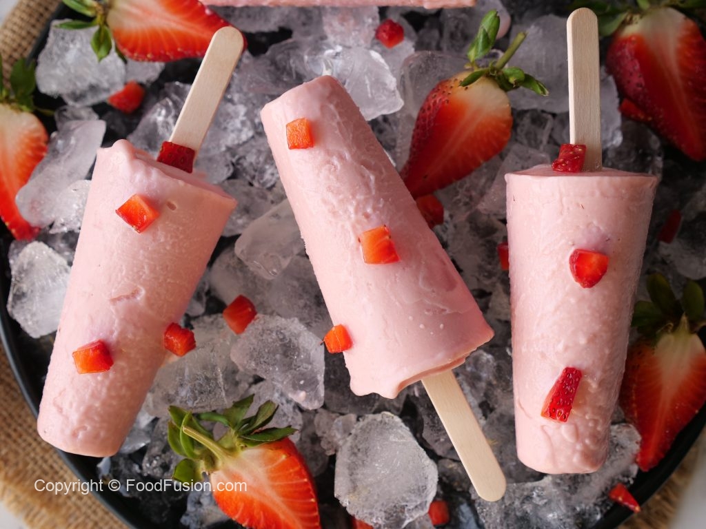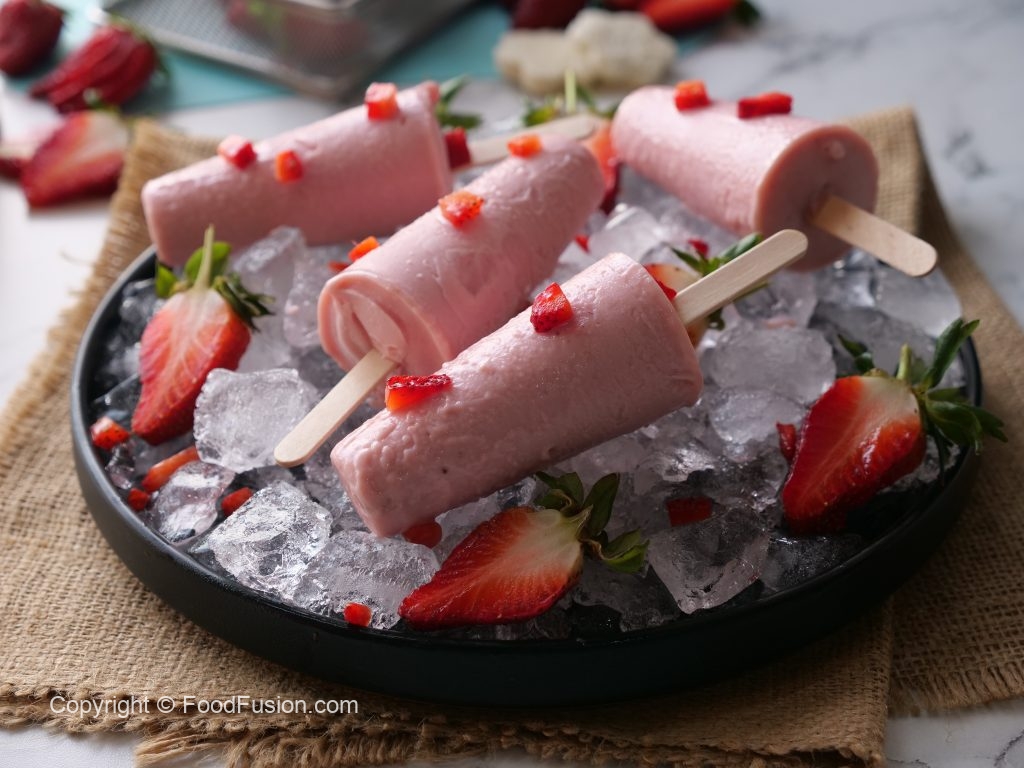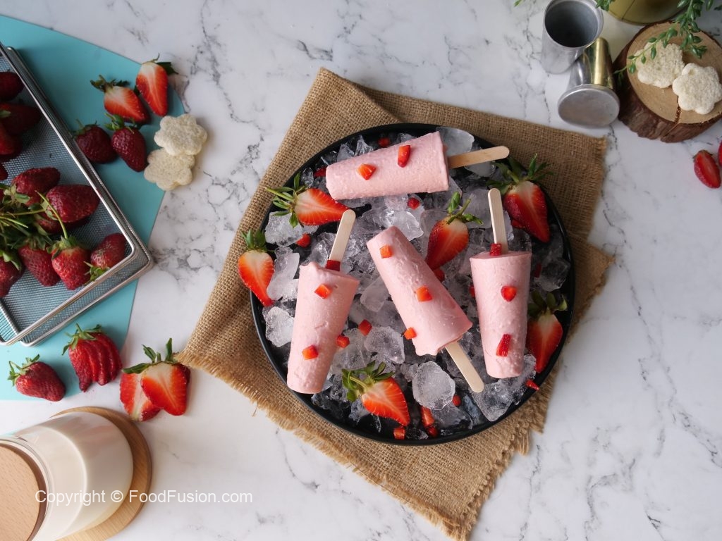 Make and freeze these strawberry kulfis and serve this lovely dessert to guests any time. #HappyCookingToYou #FoodFusion