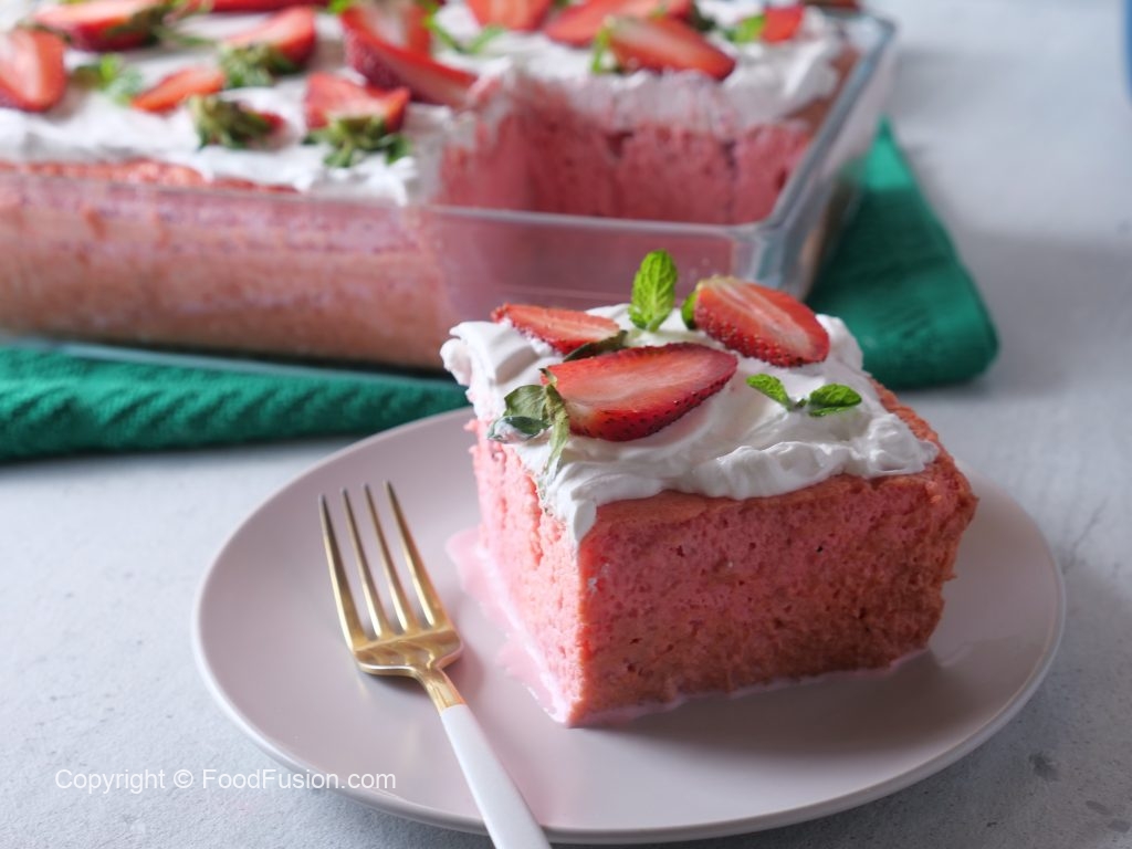 Just like you get at bakeries Strawberry Tres Leches Cake. Now make it at home and enjoy your day. #HappyWomensDay #WomensDaySpecial #FoodFusion #HappyCookingToYou #PakolaMilk