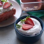 Add icing sugar, strawberry essence & beat well until soft peaks form (7-8 minutes).