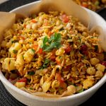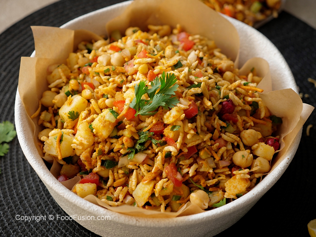 In a bowl,add roasted puffed rice,cucumber,onion,chickpeas,tomato,potato,green chilli,ginger,nimco mix,pickled oil,prepared spice mix,fresh coriander,lemon juice & mix well.