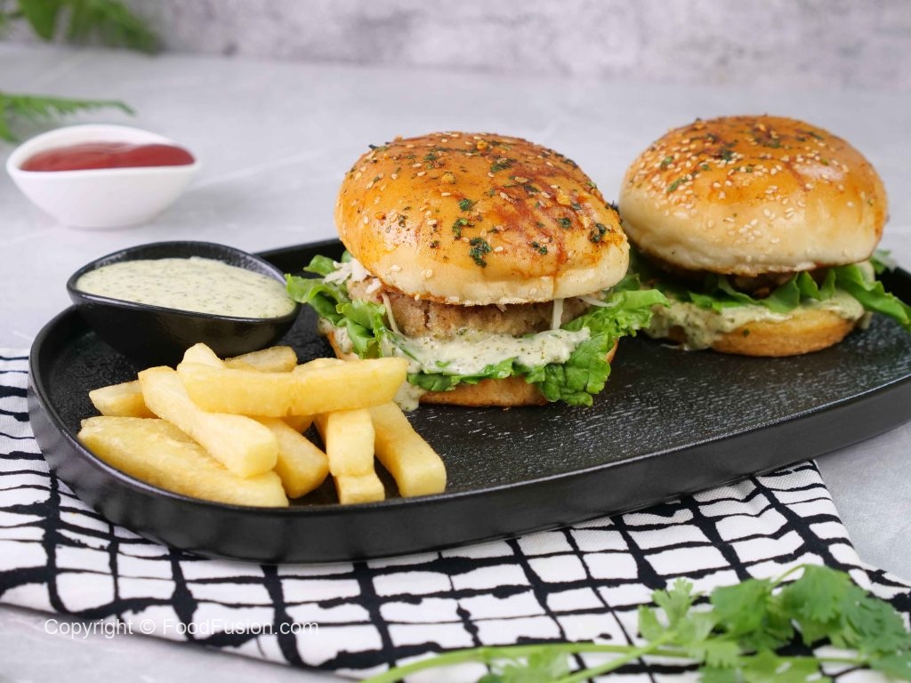 -On a griddle,add cooking oil & fry patty on medium flame from both sides until golden & crispy.