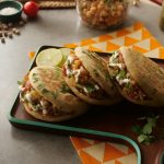 Add prepared stuffing, drizzle whisked yogurt, fresh coriander on top & serve!