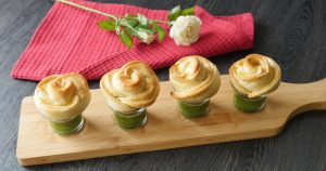 Chicken stuffing dal dein aur end sa carefully roll kertay hoye rose ki shape bana lein (makes 6-8).