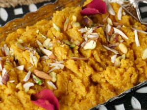 In a grinder,add green cardamom,dry dates,almonds,cashew nuts & grind to make powder & set aside.