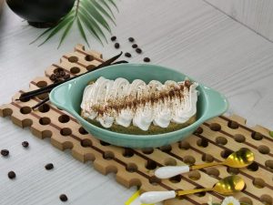 -In warm milk,add stevia,coffee,coconut milk powder,cream,whisk well & set aside.