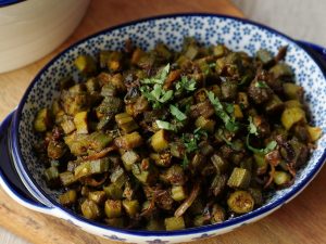 Bhindi dal ker ache tarhan mix karein aur darmiyani ancch per 4-5 minutes kliya paka lein aur musalsal mix kertay rahein.