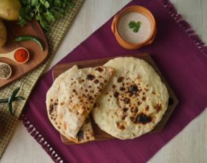 Add prepared potato filling (2-3 tbs), mozzarella cheese (2 tbs), cheddar cheese (2 tbs) and fold all edges to seal the filling.