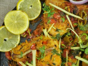 Heat oil on tawa, add chicken with marination and fry until chicken is half done, set aside.