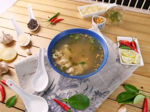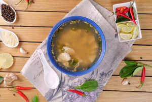-In a pot,add water,chicken bones with fillet & bring it to boil & remove scum.