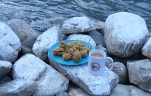 In bowl,add gram flour,cumin seeds,red chilli crushed,salt,baking powder,tikka masala and mix well.