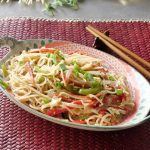 Add boiled spaghetti,white pepper powder,black pepper crushed,salt,chicken powder,soy sauce,hot sauce,vinegar and mix until well combined (1-2 minutes).