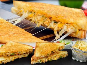 Cling film per bread slices rakh dein aur mayo mustard spread laga lein,ice berg,cheese slice,gajar ka mixture,fried chicken pieces,bbq sauce,kheera slices,purple cabbage mixture,tamatar slices,fried anda rakh ker upper sa dosra slice rakh dein aur cling film mein warp ker ka do hisson mein cut ker lein & serve karein!
