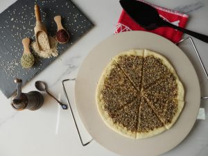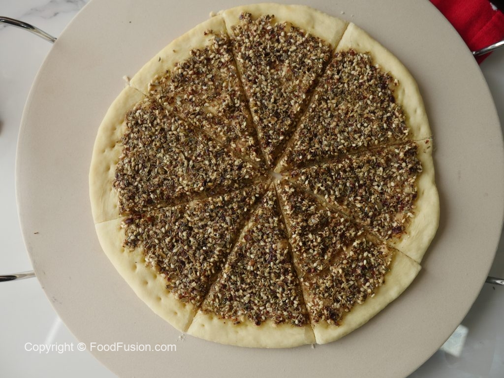 In bowl,add coarsely grounded sesame seeds,sumac powder,dried thyme,dried oregano,salt,black pepper powder and mix well.